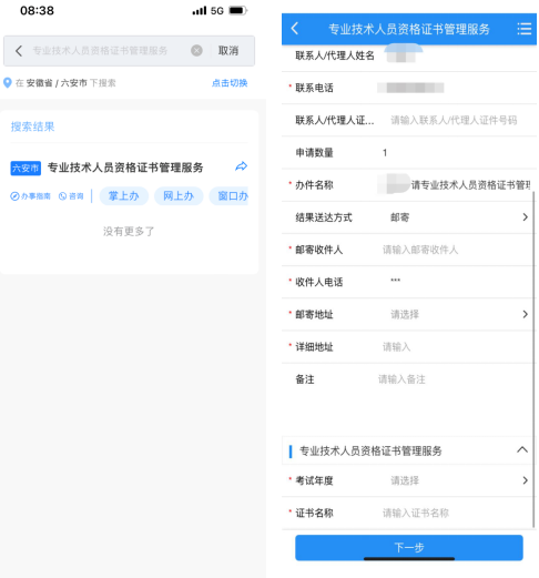 1.网申邮寄??忌略赝钍峦ˋpp,进入“长三角政务服务地图”,搜索事项““专业技术人员资格证书管理服务”,选择“邮寄”结果送达方式,提供准确的寄送地址及联系电话,填写考试年度和证书名称。系统审核后通过中国邮政速递免费寄送证书,证书仅支持本人当面签收。操作步骤请查看附件:皖事通App网申邮寄证书操作指南。