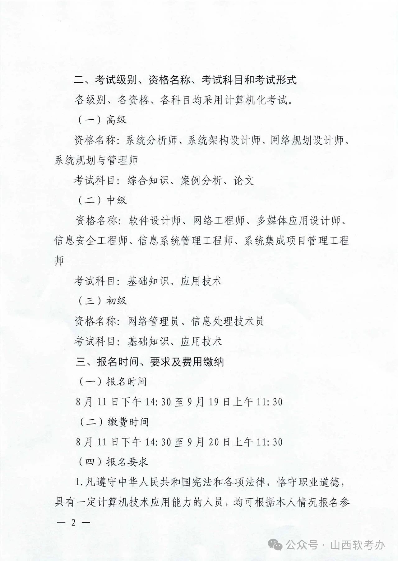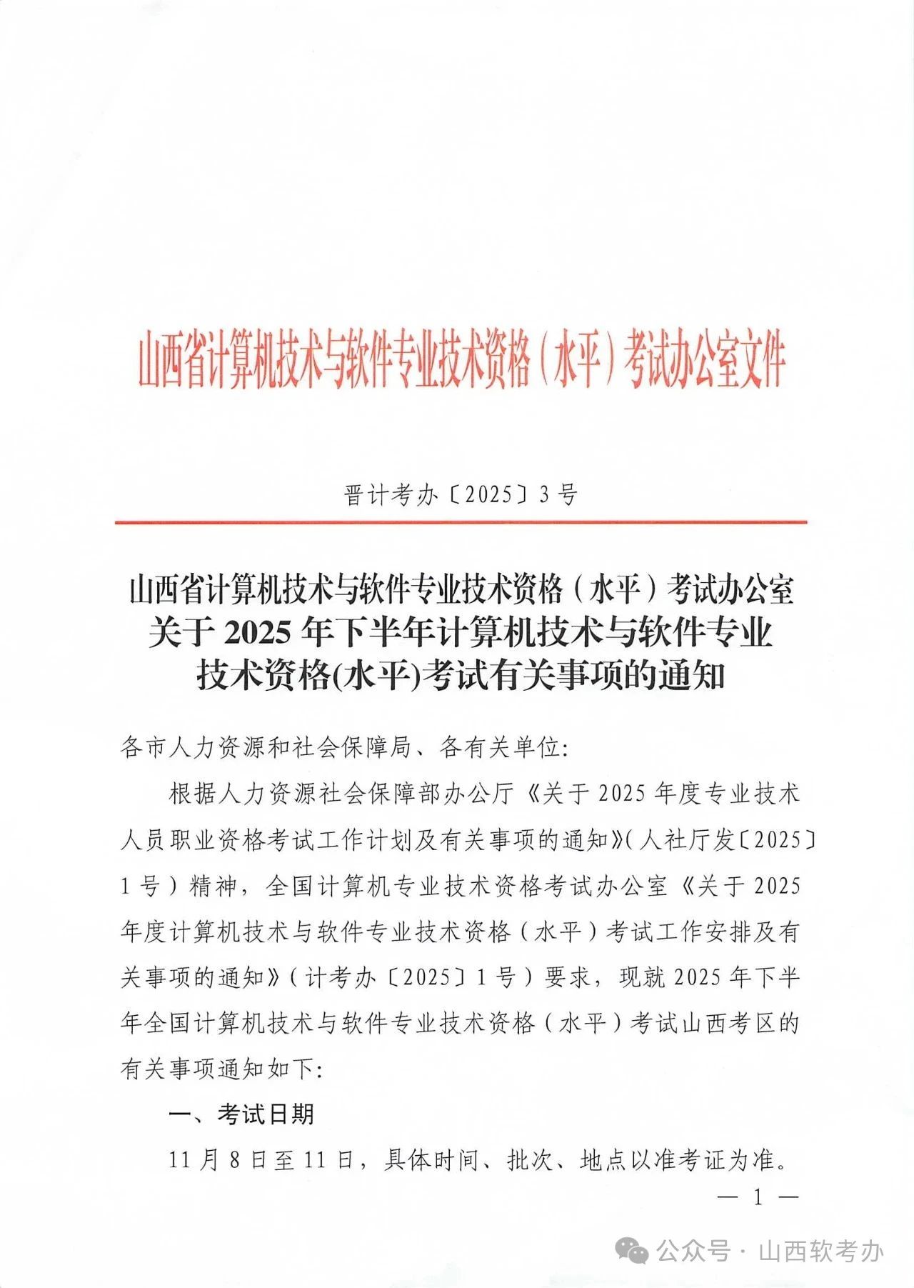 关于山西省2025年下半年计算机软考报名考试时间通知