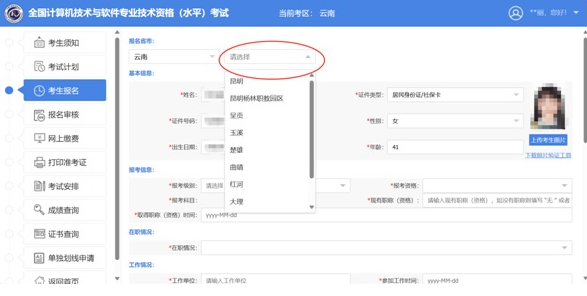 2、报名省市(即考试考区):昆明、呈贡、杨林、安宁、玉溪、楚雄、曲靖、红河、大理、丽江、保山、普洱。