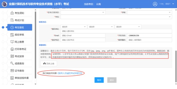 3、按要求提交属地证明材料,阅读承诺书并勾选已读,方可提交报名信息,等待审核: