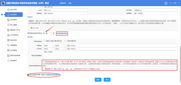 查看报考页面下方的“单独划线须知”,符合申报条件的报考人员在报考页面下方“是否单独划线地区考生”点选“是”,按要求上传申报材料,阅读承诺书并勾选已读,与报名信息一起等待审核。