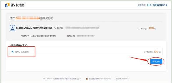 2、在支付界面,选择支付方式,点击“确认支付”:
