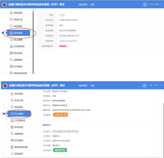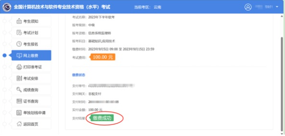 5、报名系统中“网上缴费”界面,显示“缴费成功”。