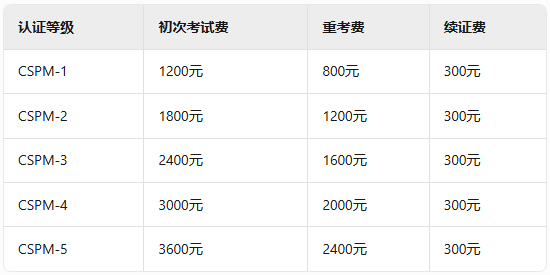 CSPM认证采用五级评价体系,各等级报考条件如下: