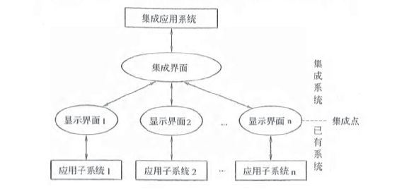表示集成是黑盒集成,无须了解程序与数据库的内部构造。常用的集成技术主要有屏幕截取和输入模拟技术。表示集成的集成点在显示界面,示意图如下: