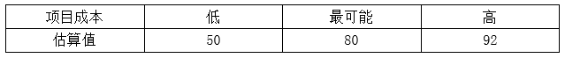 66、某项目成本估算区间如图所示(单位:万元),则在84万元内完成项目的可能性是:()。